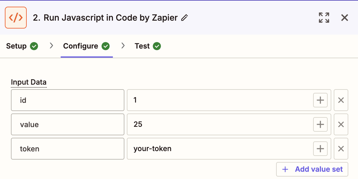 Add a "Code by Zapier" Action